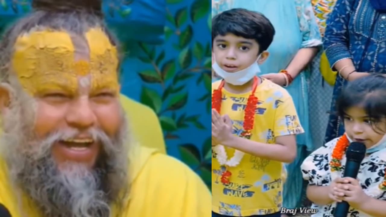 बच्चे बहुत क्यूट होते हैं, वे कोई बात कहते हैं तो किसी का ध्यान उस और चला जाता है। वहीं बच्चे कुछ यूनिक पेश कर रहे हों तो दिलचस्पी बढ़ जाती है। सोशल मीडिया पर वायरल हो रहे एक क्लिप में देखा जा सकता है कि एक छोटी बच्ची और लड़का राधे-कृष्ण की कथा को रैप सॉन्ग के रूप में पेश कर रहे हैं। वहीं प्रेमानंद महाराज तो मुंह खोलकर उनकी कला को सुन रहे हैं, उसे महसूस कर रहे हैं।