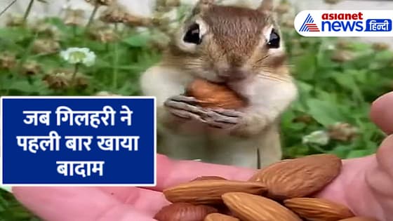 गिलहरी ने पहली बार चखा बादाम का स्वाद, फिर आया ऐसा क्यूट रिएक्शन, देखें Viral Video