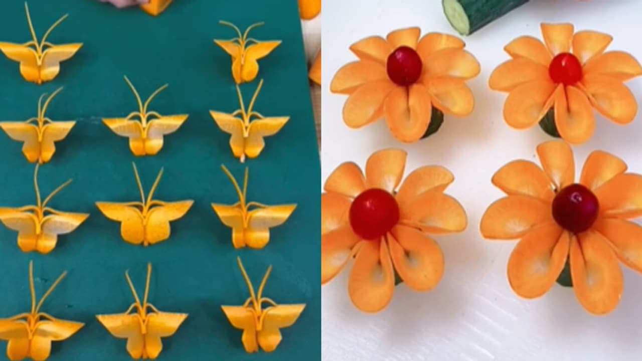 सोशल मीडिया पर एक वीडियो तेजी से वायरल हो रहा है जिसमें एक आर्टिस्ट गाजर, खीरा और चेरी से खूबसूरत खाने योग्य फूल बनाता हैं। इस क्रिएटिव वीडियो को अब तक 11 मिलियन से ज्यादा बार देखा जा चुका है ।