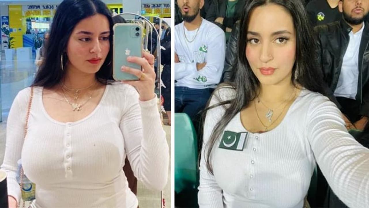 ट्रेंडिंग डेस्क. अपनी बेहतरीन किस्मत की बदौलत पाकिस्तान टी-20 WorldCup के फाइनल में पहुंच गया है पर पाकिस्तान टीम से ज्यादा उसकी इस फैन के सोशल मीडिया पर चर्चे हैं। पाकिस्तान के सेमीफाइनल मैच के दौरान मौहतरमा की एक फोटो क्या वायरल हुई, क्रिकेट फैंस क्रेजी हो गए। जब हमने इन मोहतरमा को खोजा, तो पता चला कि ये पाकिस्तानी फैन ऑस्ट्रेलिया में रहती हैं और अपनी खूबसूरती से सोशल मीडिया पर लोगों को दीवाना बनाती हैं।