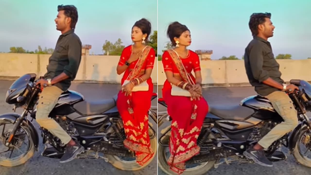 बाइक पर रूठी पत्नी को घर छोड़ने जााता पति का वीडियो वायरल