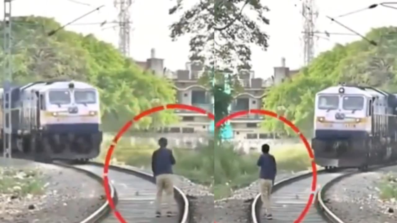 सोशल मीडिया पर एक वीडियो वायरल हो रहा है जिसमें एक सनकी आदमी रेलवे ट्रैक पर चलती ट्रेन को किस करने की कोशिश करता है। इसके बाद लोको पायलट उसे सिंघम स्टाइल में सबक सिखाता है। इसका वीडियो वायरल हो गया है।
