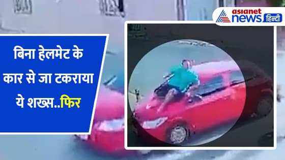 बिना हेलमेट पहने सीधा कार से जा टकराया शख्स, देखें हैरान करने वाला वीडियो