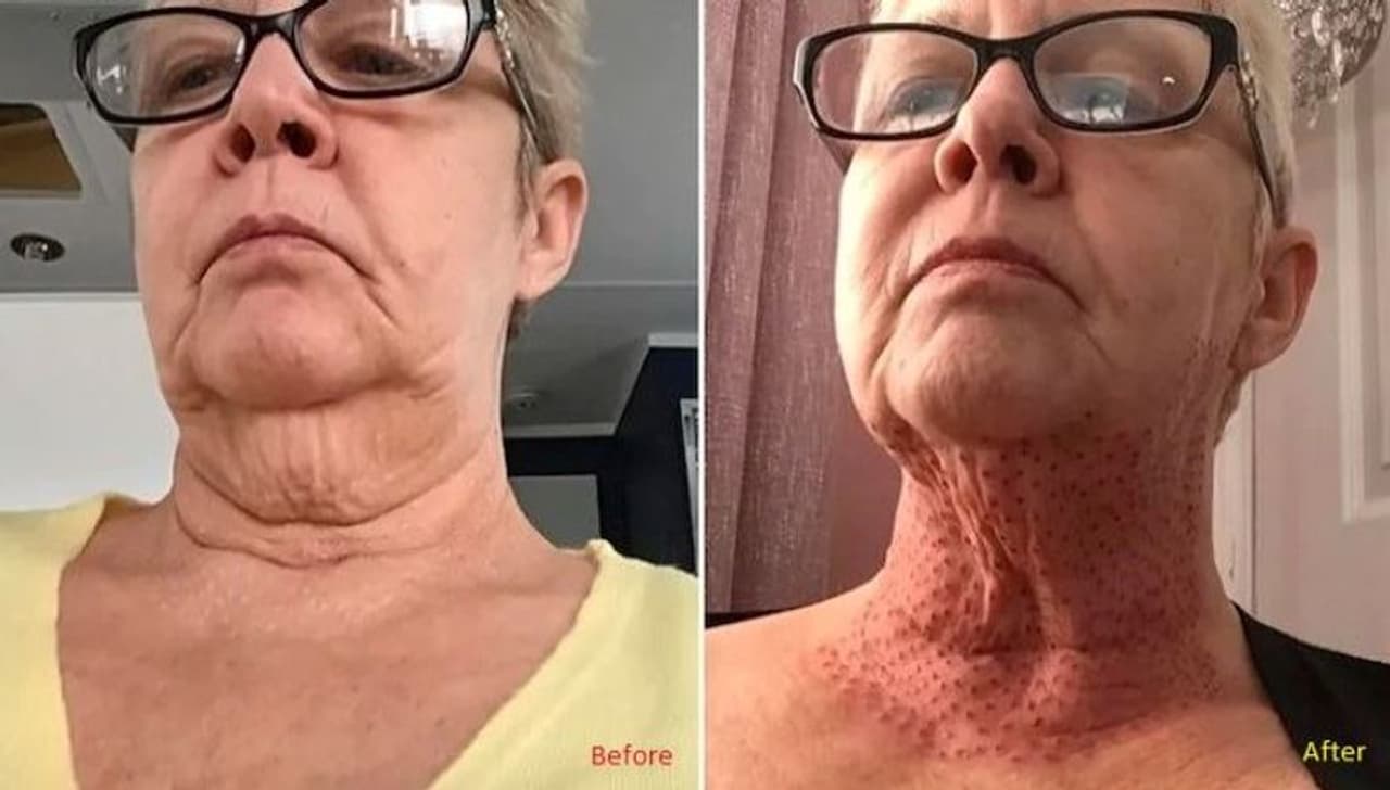 ट्रेंडिंग डेस्क। एक महिला को अपने शरीर के साथ एक्सपेरिमेंट करना महंगा पड़ गया। वह अपने गर्दन की डबल चिन (मोटी और दोहरी ठुड्डी) को कम कराने के लिए ब्यूटीशियन के पास गई थी, मगर उन्होंने उसके साथ ऐसा प्रयोग किया, जिससे उसकी गर्दन छिपकली यानी लिजार्ड नेक जैसी हो गई। महिला का कहना है कि उसे भयानक अनुभव का सामना करना पड़ा और गर्दन पर लाल डॉट्स उभर आए। अब उसके नए चेहरे वाली तस्वीर खूब वायरल हो रही है।