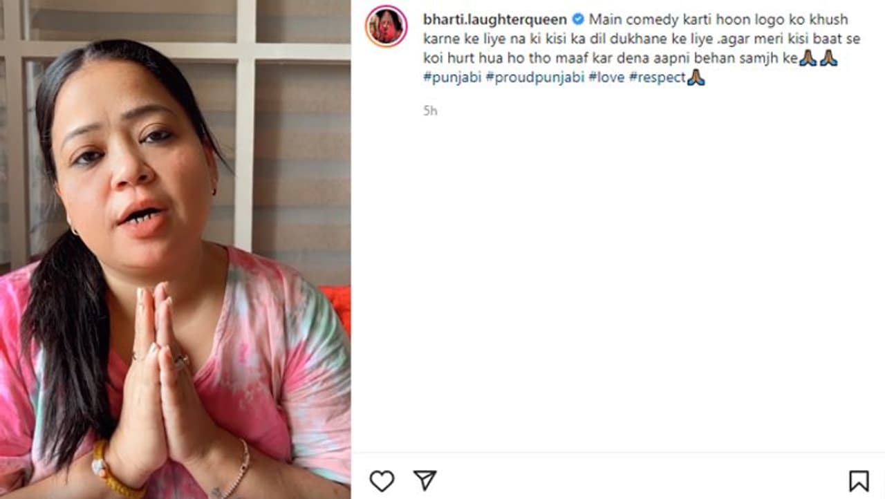 भारती ने वीडियो के कैप्शन में लिखा है, "मैं कॉमेडी करती हूं लोगों को खुश करने के लिए। न कि किसी का दिल दुखाने के लिए। अगर मेरी किसी बात से कोई हर्ट हुआ हो तो माफ़ कर देना अपनी बहन समझ कर।"