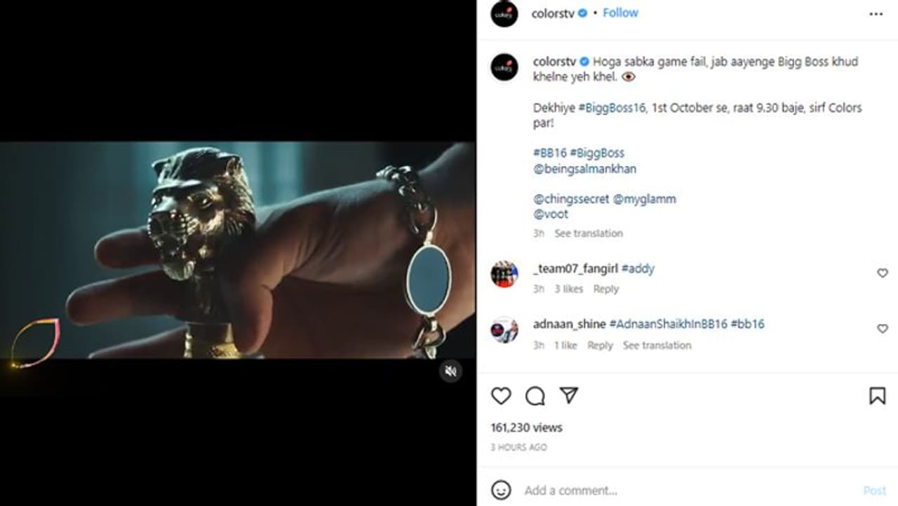 सलमान खान कह रहे हैं, "मोगैम्बो अब कभी खुश नहीं होगा। क्योंकि अब सबको डर लगेगा बिग बॉस से। 'बिग बॉस सीजन 16' गेम बदलेगा। क्योंकि अब 'बिग बॉस' खुद खेलेगा।" चैनल ने वीडियो साझा करते हुए लिखा है, "होगा सबका गेम फेल, जब आएंगे बिग बॉस खुद खेलने ये खेल।" इसके साथ बताया गया है कि 'बिग बॉस' के 16वें सीजन का प्रीमियर एक कतूबर को 9:30 बजे होगा।