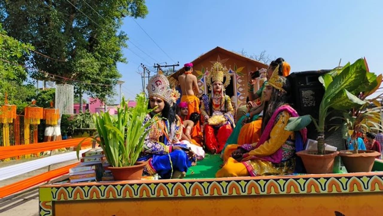 अयोध्या: उत्तर प्रदेश की रामनगरी में आज दीपोत्सव 2022 का कार्यक्रम भव्य होगा। पीएम मोदी के आगमन से इस बार दीपोत्सव का कार्यक्रम पिछले सालों से भव्य और विशाल हो गया है। दीपोत्सव को यादगार बनाने के लिए हर संभव प्रयास किए गए है। इस बार सरयू तट पर दीपक जलने से पहले भगवान श्रीराम की नगरी उत्सव में सराबोर है। 16 रथों में कलाकारों ने सवार होकर भगवान राम की लीला यात्रा निकाली और धर्म नगरी में सड़कों पर जय श्रीराम के नारे गूंजे है। शोभायात्रा को राज्य सरकार के पर्यटन एवं संस्कृति मंत्री जयवीर सिंह ने साकेत महाविद्यालय से हरी झंडी दिखाकर रवाना किया।