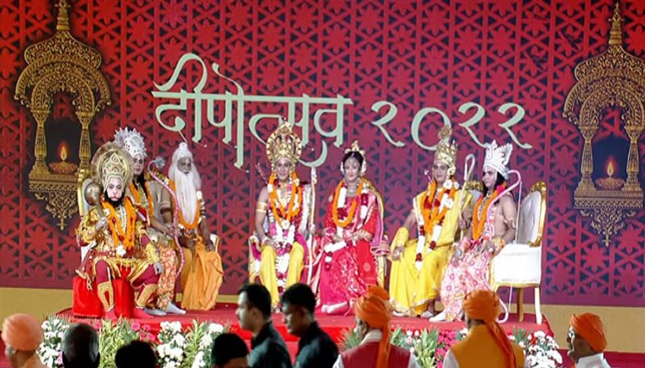 दीपोत्सव कार्यक्रम को लेकर लोगों में उत्साह देखने को मिल रहा है। इस बीच प्रभु श्री राम, माता सीता और लक्ष्मण के साथ विमान से अयोध्या पहुंचे। यहां राज्यपाल आनंदीबेन पटेल और सीएम योगी आदित्यनाथ ने उनकी अगवानी की। हेलीकॉप्टर से ही पुष्पवर्षा भी वहां पर की गई। इसके बाद भरत मिलाप किया गया। इस दौरान वहां मौजूद लोगों ने जय श्री राम के नारे लगाए।