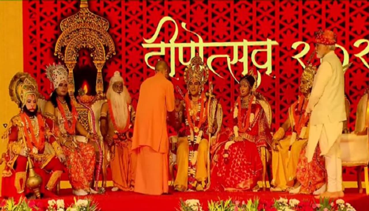 गौरतलब है कि उत्तर प्रदेश की रामनगरी अयोध्या में छोटी दिवाली यानी 23 अक्टूबर को 17 लाख दीये जलाकर नया रिकॉर्ड बनाया जा रहा है। प्रधानमंत्री नरेंद्र मोदी पहली बार दीपोत्सव कार्यक्रम में शामिल पहुंचे। राज्य के भव्य छठें दीपोत्सव में पीएम मोदी बतौर मुख्य अतिथि के रूप में पहुंचे और गुरु वशिष्ठ की भूमिका में उन्होंने भगवान श्रीराम का प्रतीकात्मक राज्याभिषेक भी किया। पीएम मोदी ने भव्य राम मंदिर के निर्माण स्थल का भी निरीक्षण किया। उसके बाद साढ़े छह बजे वह सरयू तट पर होने वाली आरती में भी शामिल हुए। राज्याभिषेक व आरती को करने के बाद पीएम मोदी द्वारा भव्य दीपोत्सव का शुभारंभ किया। वहीं दूसरी ओर रामलला की पोशाक भी बनकर तैयार हो गई है, जिसका रंग गुलाबी है। पीएम मोदी के आगमन के बाद रामलला को ड्रेस को धारण कराया गया।