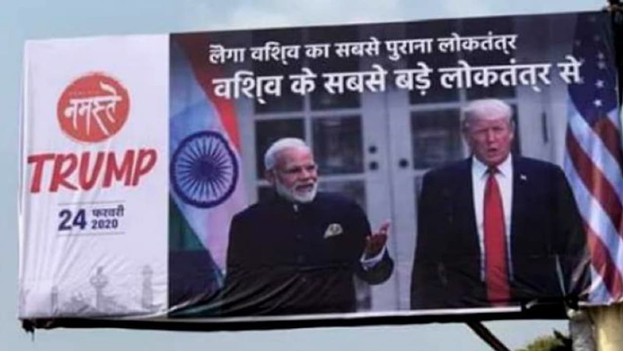 आगरा (Uttar Pradesh). अमेरिकी राष्ट्रपति डोनाल्ड ट्रंप अपनी फैमिली के साथ 24 फरवरी यानी सोमवार को ताज महल दीदार के लिए आगरा आ रहे हैं। उनके वेलकम के लिए आगरा प्रशासन की तरफ से सभी तैयारियां पूरी कर ली गई हैं। शहर भर में मोदी और ट्रंप के बैनर पोस्टर लगाए गए हैं। दीवारों पर पेंटिंग की गई है। जानकारी के मुताबिक, ट्रंप जिस रास्तों से होकर गुजरेंगे वहां करीब 1000 से ज्यादा पोस्टर और होर्डिंग लगाए गए हैं, जिनमें हिंदी भाषा में लिखे स्लोगन में कई गलतियां हैं। वहीं, डीएम पीएन सिंह ने कहा, होर्डिंग में लिखे स्लोगन में गलतियों के बारे में पता चला है। इन होर्डिंग्स को हटाया जा रहा है।