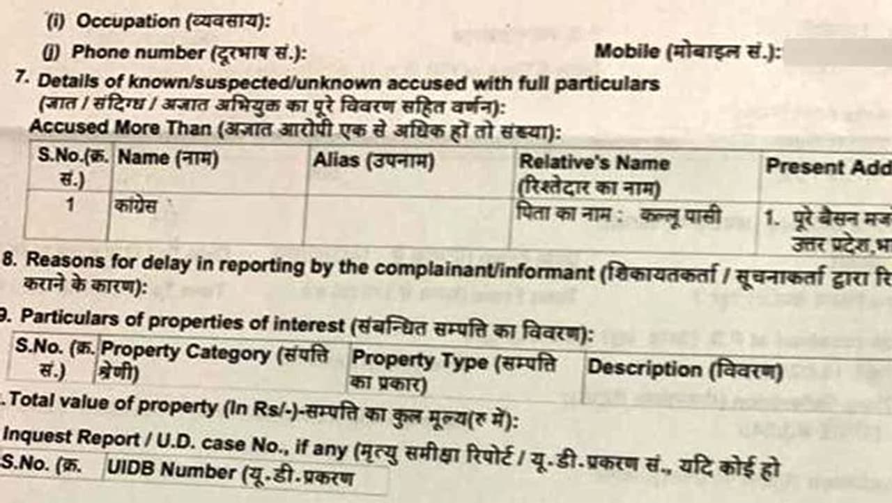 रायबरेली (Uttar Pradesh). कांग्रेस की अंतरिम अध्यक्ष सोनिया गांधी के संसदीय क्षेत्र रायबरेली में एक महिला ने कांग्रेस पर उसके साथ रेप करने का आरोप लगाया है। हैरान होने की जरूरत नहीं है, पुलिस ने दर्ज की गई एफआईआर में आरोपी के नाम के बॉक्स में कांग्रेस लिखा है।