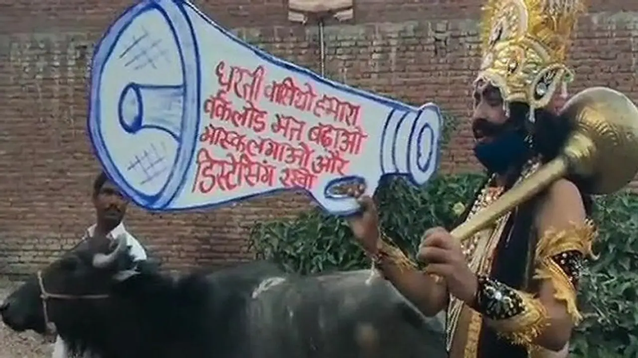 यमराज बने भानू राठौर ने शुक्रवार को मझोला थाना क्षेत्र के मिलन विहार मोहल्ले में लोगों को सोशल डिस्टेंसिंग, मास्क पहनने और बेवजह घरों से बाहर न निकलने के लिए समझाया। वो हाथ में माइक ले रखा था। इसके साथ ही हाथ में प्ले कार्ड लिया था, जिस पर लिखा था कि धरती के वासियों हमारा वर्क लोड मत बढ़ाओ। मास्क लगाओ और फिजिकल डिस्टेंसिंग का पालन करो। वह लोगों के बीच में जाकर कोरोना वायरस महामारी के बारे में लोगों के बीच जागरूकता पैदा कर रहा था।