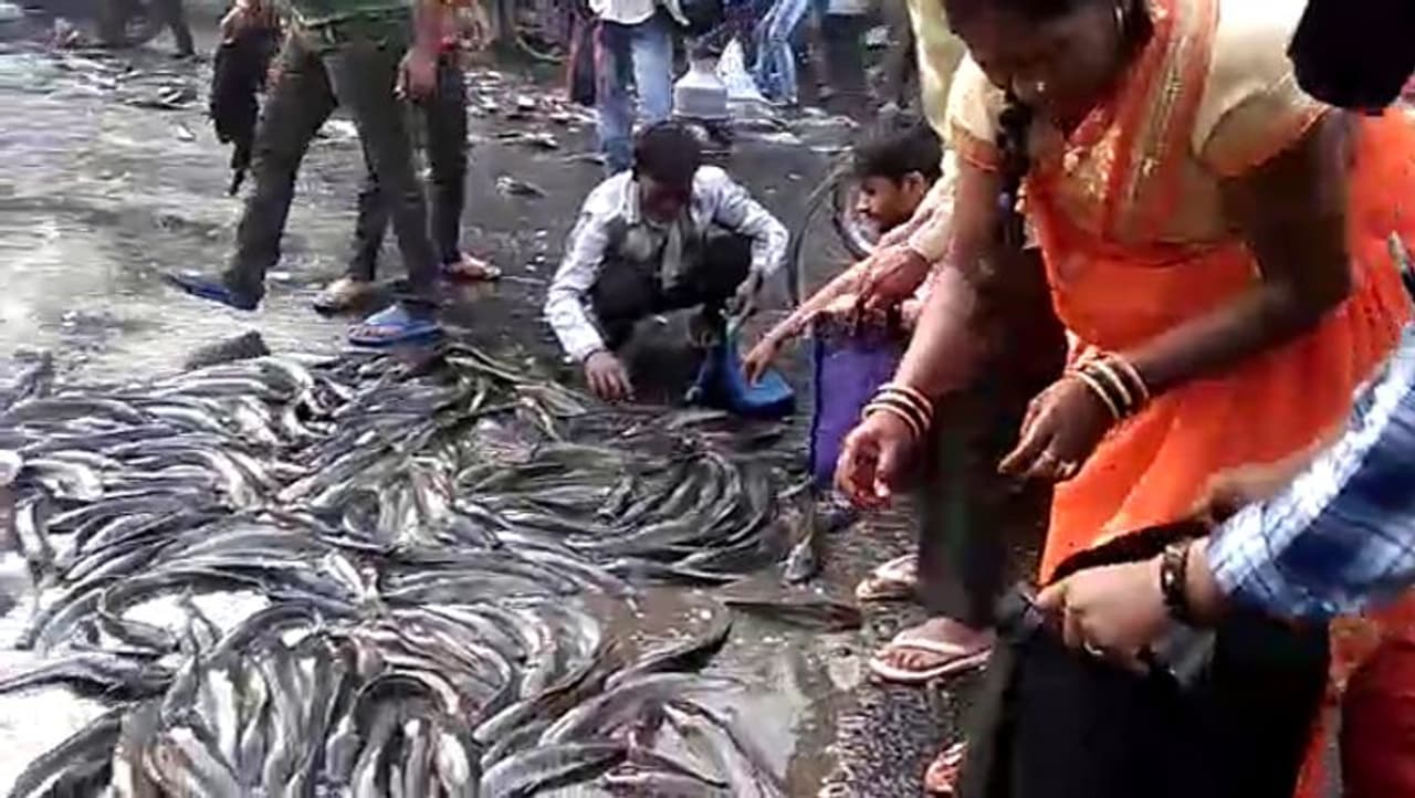 यूपी के कानपुर में मंगलवार को मछलियों के लिए लूट मच गई। पूरी सड़क मछलियों से भरी थी, जिन्हें बटोरने के लिए भारी भीड़ जुट गई। जिसको जहां जगह मिली वहीं भरने लगे। इसके कारण पूरा ट्रैफिक ठप हो गया। मौके पर पहुंची पुलिस ने मछलियों को रास्ते से हटाया।