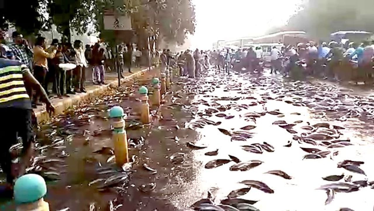 पुलिस का कहना है कि ट्रक से मछलियां सड़क पर आईं थीं। जिन्हें बटोरने के लिए लोग जुटे थे। ट्रैफिक बाधित होने पर सभी मछलियों को रास्ते से हटाया गया।