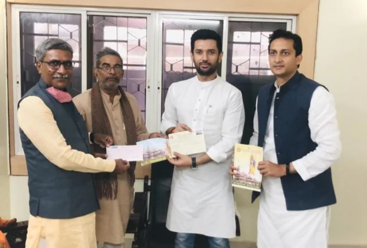 लोक जनशक्ति पार्टी के राष्ट्रीय अध्यक्ष चिराग पासवान ने अयोध्या में राम मंदिर निर्माण के लिए 1 लाख 11 हजार रुपए का दान किया है। चिराग पासवान ने राम मंदिर निर्माण के लिए दान की गई धनराशि की जानकारी सोशल मीडिया पर साझा किया। साथ ही कहा है कि वंचित वर्ग से आने वाली श्रीराम की परम भक्त माता शबरी का वंशज होने के नाते हम सबका यह कर्तव्य है कि अपनी-अपनी सहभागिता भगवान श्रीराम के भव्य मंदिर निर्माण में निभाएं।
