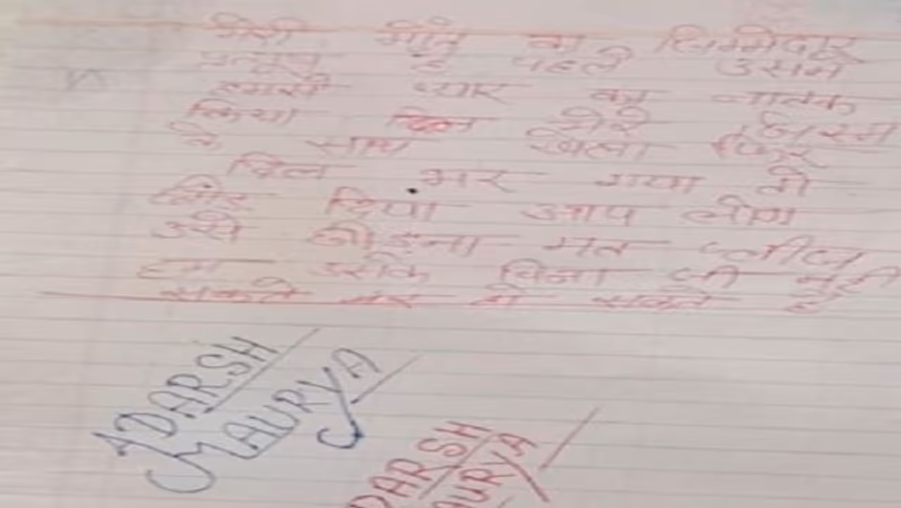पुलिस ने मौके पर पहुंचकर युवती के शव को नीचे उतारकर पोस्टमार्टम के लिए भेज दिया है। मृतका ने सुसाइड नोट में लिखा है कि मेरी मौत का जिम्मेदार प्रत्युष है, उसने पहले हमसे प्यार का नाटक किया और मेरे जिस्म के साथ खेला। जब उसका मन भर गया तो उसने मुझे छोड़ दिया। लेकिन आप लोग उसे मत छोड़ना। प्लीज, हम उसके बिना जी नहीं सकते, लेकिन मर तो सकते हैं। सुसाइड नोट के नीचे युवती ने आदर्श मौर्या लिखा था। यह घटना पिहानी थाना क्षेत्र के रैंगाई गांव की है।