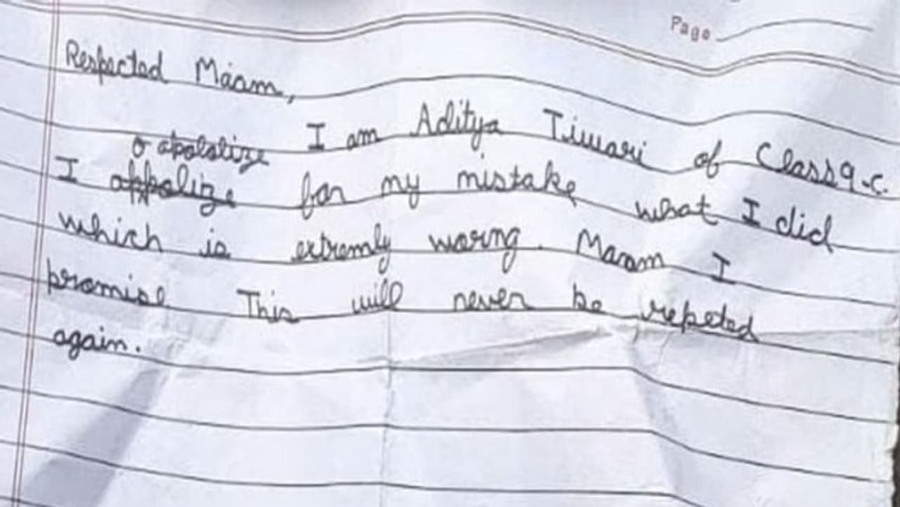 गंभीर रूप से घायल छात्र के बैग से मिले नोट में लिखा था कि मैं आदित्य तिवारी कक्षा 9 का छात्र हूं। मैं अपनी गलती के लिए माफी मांगता हूं। मैंने जो किया था, वह बिल्कुल गलत था। मैम मैं वादा करता हूं कि ऐसा दोबारा कभी नहीं होगा। दूसरी ओर सीएमएस के प्रवक्ता ऋषि खन्ना का कहना है कि घटना से पूरा सीएमएस परिवार सकते में हैं और आदित्य के ठीक होने की मनोकामना करता है। छात्र से मिला नोट स्कूल की साधारण प्रक्रिया है, जब कोई छात्र गलती करता है तो शिक्षिका माफीनामा लिखवाती है। छात्र ने शिक्षिका का नंबर पिता के मोबाइल पर ब्लॉक कर रखा था। इस वजह से टीचर ने उससे कहा कि तुम्हारे पिता से बात नहीं हो पा रही है। उनसे कहना होम विजिट पर आना है। इसके अलावा उन्होंने यह भी कहा कि तुम्हारा आईकार्ड भी नहीं बना है। उनसे दो फोटो भी लेनी है।