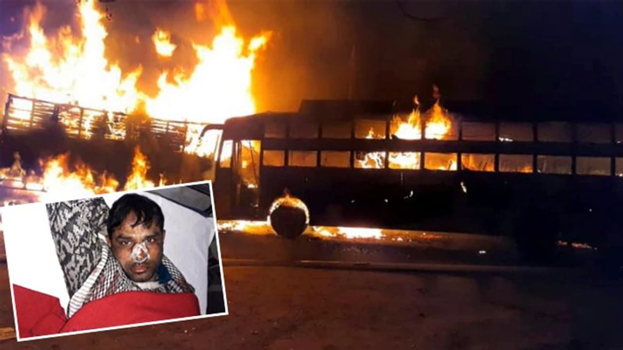 कन्नौज (Uttar Pradesh). यूपी के कन्नौज में हुए बस हादसे में करीब 20 लोगों के मारे जाने की खबर है। बस में करीब 45 लोग सावार थे। आमने-सामने भिड़ंत के बाद ट्रक और स्लीपर बस में आग लग गई, जिससे बस और ट्रक धू-धूकर जल उठे। कुछ ने खिड़की से कूदकर जान बचाई। हादसा शुक्रवार रात दिल्ली-कानपुर जीटी रोड पर छिबरामऊ में घिलोई के पास हुआ। इस बीच एक ऐसा शख्स सामने आया है, जिसने हादसे के समय अपनी जान पर खेलकर 4 लोगों की जान बचाई। इस दौरान वह खुद भी जख्मी हो गया।