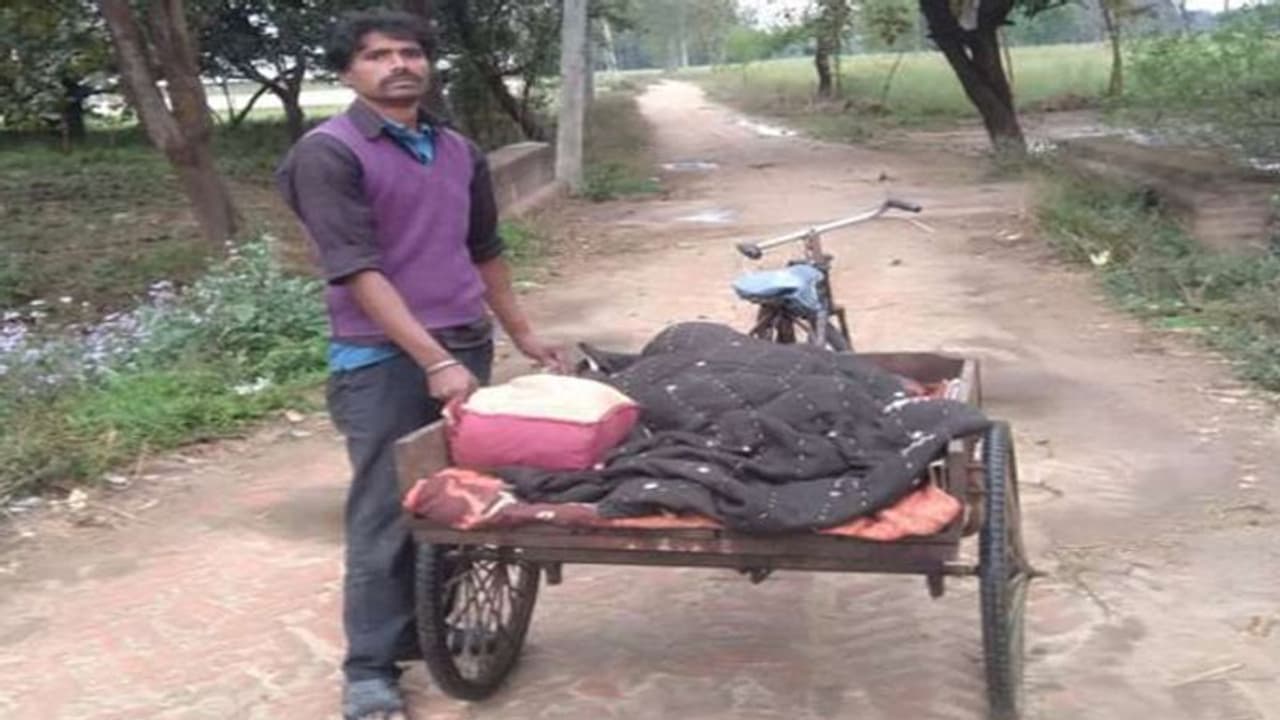 मामला यूपी के संतकबीरनगर का है। जिले के पौली ब्लाक के छपरामगर्वी निवासी मंगल कन्नौजिया दो वर्ष से छितही गांव के सीवान में स्थित एक यूकेलिप्टस की बाग में झुग्गी बनाकर दादी के साथ रहता है। मंगल मजदूरी करता है और शाम को आकर खुद ही भोजन बनाता है। शुक्रवार की दोपहर उसकी दादी रामपति देवी की मौत हो गई। मंगल ने दादी के अंतिम संस्कार के लिए चार कन्धों की व्यवस्था करने की काफी कोशिश की लेकिन उसे शव उठाने के लिए चार कंधे नहीं मिले। जिसके बाद मंगल दादी की लाश ठेले पर लाद कर खुद ही निकला पड़ा। अकेले होने के कारण दादी का अंतिम क्रियाकर्म करना मुश्किल था इसलिए वह दादी का शव ठेले पर लाद कर अपनी बुआ के घर चल पड़ा। जहां मृतका का शव रखा गया है। कल रिश्तेदारों के आने के बाद उसका अंतिम संस्कार किया जाएगा।