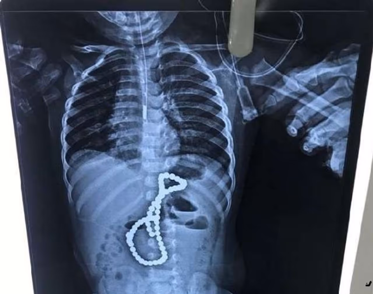 लखनऊ (Uttar Pradesh) । डेढ़ साल का का एक बच्चा खेल-खेल में चुंबकनुमा 65 मोतियों वाली माला निगल गया। हैरानी की बात यह कि परिवार के लोगों को इसकी जानकारी नहीं हो सकी, जबकि बच्चा लगातार उल्टियां कर रहा था और रो रहा था। बावजूद इसके उसे अस्पताल नहीं ले गए। जब बच्चे की हालत काफी गंभीर हो गई तो पांचवें दिन उसे एक निजी चिकित्सक के पास ले गए। जहां हालत नाजुक देख एक्सरे कराया गया, जिसकी रिपोर्ट देखकर सभी हैरान हो गए।