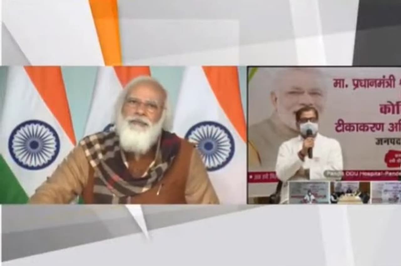 पंडित दीन दयाल उपाध्याय जिला अस्पताल में सीएमएस डा. वी शुक्ला क्या शुक्ला से पीएम पीएम मोदी ने पूछा शुक्ला नमस्कार, हमारे काशीवासी खुशी हैं। जिसके बाद वैक्सीनेशन के बारे में बातचीत की। इस दौरान सीएमएस ने बताया कि यदि इंजेक्शन लगवाने के बाद सर्दी,जुखाम आ भी आए तो घबड़ाने की बात नहीं है। इंजेक्शन पूरी तरह से सुरक्षित है। उन्होंने बताया कि 10 लाख लोगों को अब तक टीका लग चुका है।