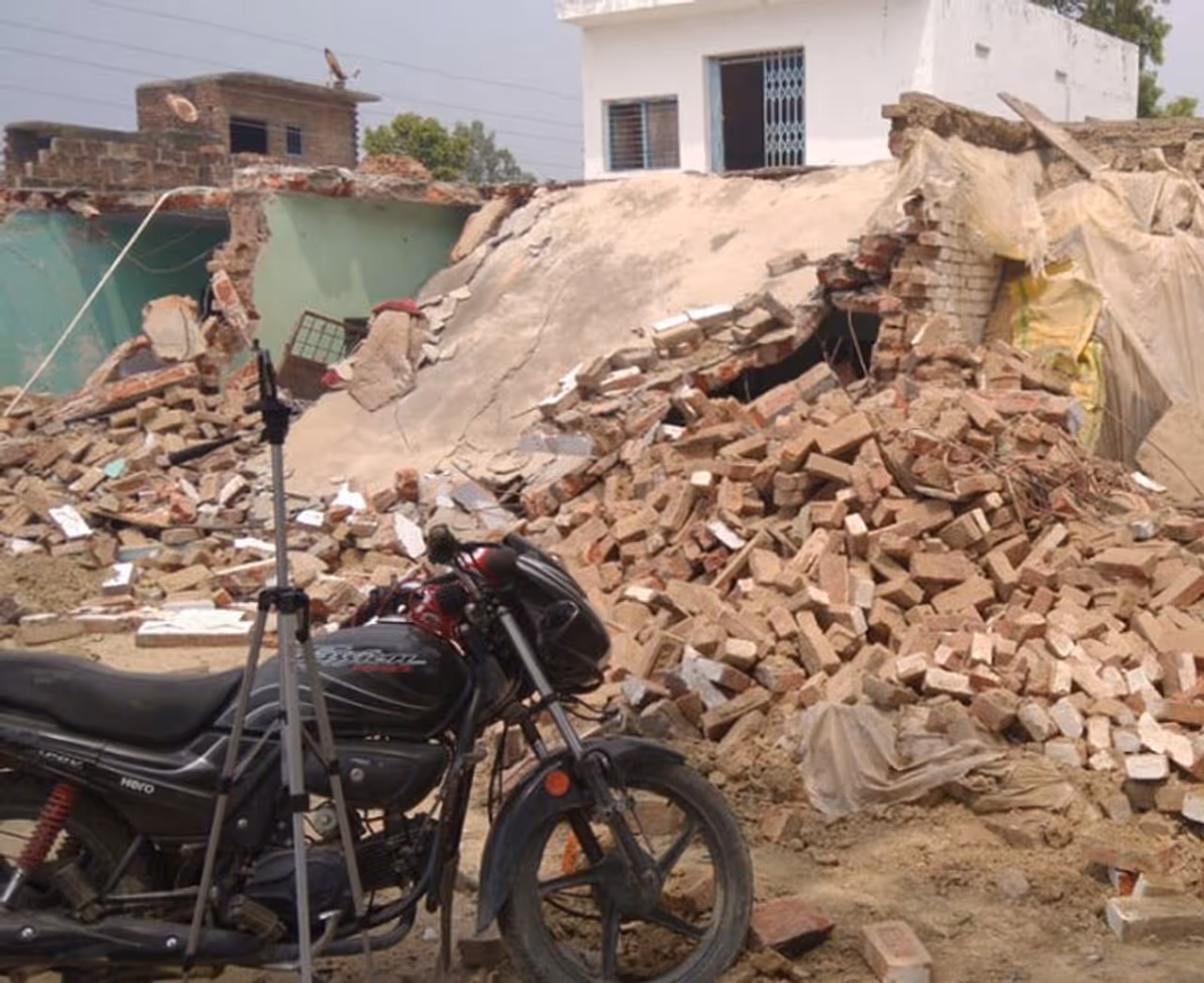 पुलिस अफसर शनिवार सुबह भारी पुलिस बल लेकर बिकरू गांव पहुंचे, और जेसीबी से विकास दुबे का घर गिरवाने की कार्रवाई शुरू करा दी। जेसीबी मशीन ने अपना काम शुरू कर दिया है। पुलिस मकान को जमींदोज करने के साथ ही विकास की लग्जरी कारों को जेसीबी से पूरी तरह से डैमेज कर दिया। इसके साथ ही ट्रैक्टर और अन्य वाहनों के साथ मकान की एक-एक चीज को तोड़ दिया गया। उधर, विकास दुबे के नेपाल भागने की भी आशंका के चलते लखीमपुर खीरी जिले की पुलिस भी अलर्ट पर है। लखीमपुर खीरी की एसपी पूनम ने बताया, नेपाल बॉर्डर पर अलर्ट कर दिया गया है। यहां नेपाल से जुड़ी 120 किमी की सीमा है, चार थाने हैं, हर जगह फोटो चस्पा कर दी गई है।मीडिया के लोगों को वहां से 300 मीटर दूर ही रोक दिया गया है। मौके पर जिले के एसपी पश्चिम अपर्णा गुप्ता खुद मौके पर हैं।
