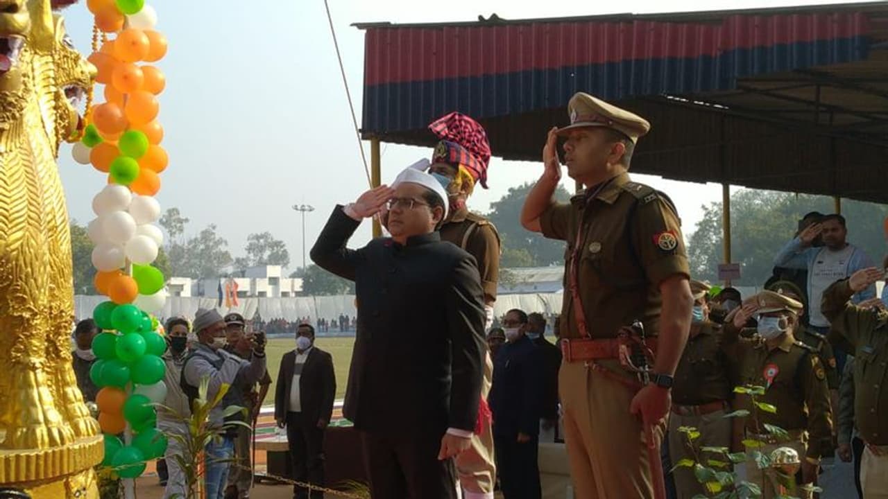 पुलिस लाइन में उपस्थित जिला जज वीर नायक सिंह, मंडलायुक्त नवदीप रिंनवा, आईजी कविन्द्र प्रताप सिंह, डीएम नीतीश कुमार तथा एसएसपी शैलेश पाण्डेय समेत तमाम प्रशासनिक व पुलिस अफसरों ने पुलिस लाइन स्थित परेड ग्राउंड पहुंचकर तिरंगे को सलामी दी। जनपद के एसपी सिटी विजय पाल सिंह को राष्ट्रपति सराहनीय सेवा सम्मान प्रशंसा चिन्ह समेत कई अफसरों व कर्मचारियों की हौसलाअफजाई में प्रशंसा पत्र और चिन्ह दिया जा रहा है।