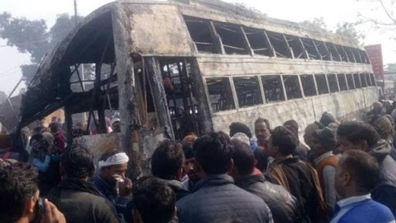 कन्नौज (Uttar Pradesh). यूपी के कन्नौज में हुए बस हादसे में करीब 20 लोगों के मारे जाने की पुष्टि हुई है। हादसा शुक्रवार रात दिल्ली-कानपुर जीटी रोड पर छिबरामऊ में घिलोई के पास हुआ। आमने-सामने भिड़ंत के बाद ट्रक और स्लीपर बस में आग लग गई, जिससे बस और ट्रक धू-धूकर जल उठे। बस में करीब 45 यात्री थे। कुछ ने खिड़की से कूदकर जान बचाई। सीएम योगी आदित्यनाथ ने मृतकों के परिजन को 2 लाख और घायलों को 50 हजार रु. सहायता राशि देने की घोषणा की। पीएम मोदी ने भी ट्वीट कर हादसे पर शोक व्यक्त किया।