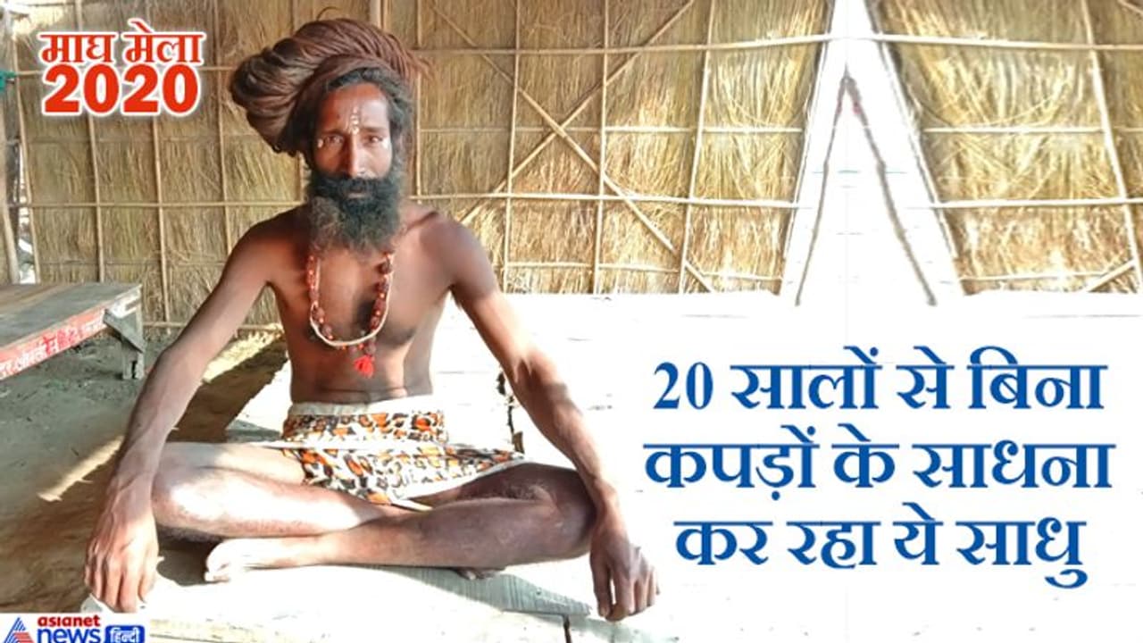प्रयागराज में संगम की रेती पर माघ मेला लगा हुआ है। पूरे देश से लोग संगम में स्नान करने पहुंच रहे हैं। लेकिन माघमेले की भीड़ में कई ऐसे भी लोग दिख जाते हैं जो लोगों के लिए आकर्षण का केंद्र बन जाते हैं। ऐसा ही एक साधक इन दिनों माघमेले में हठयोग करता आपको दिख जाएगा। ये साधक 20 सालों से हर मौसम में बिना कपड़े के रहता है।