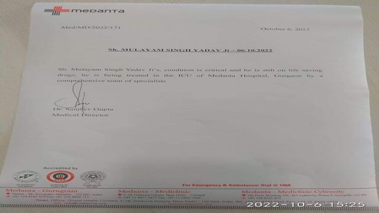 यूपी के पूर्व मुख्यमंत्री और सपा संरक्षक मुलायम सिंह यादव की हालत अभी भी गंभीर बनी हुई है। बताया जा रहा है कि नेताजी के फेफड़े और किडनी उनका साथ नहीं दे रहे हैं और उन्हें जीवन रक्षक दवाइयों पर रखा गया है।