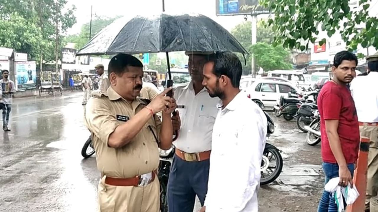 गोरखपुर । कहते हैं कि किसी चीज को बदलने का अगर जुनून आपके अंदर हो तो वह किसी की सुनने पर नहीं अपने कामों पर ध्यान देता है । यातायात व्यवस्था में परिवर्तन लाने और लोगों को जागरूक करने के लिए दिन प्रतिदिन अपने नए-नए प्रयोगों के लिए चर्चा में रहने वाले एसपी ट्रेफिक आदित्य प्रकाश वर्मा गोरखपुर की यातायात व्यवस्था को सुदृढ़ करने के लिए रात दिन प्रयास कर रहे हैं । जिसका एक नजारा आज गोलघर की सड़कों पर देखने को मिला । जब एसपी ट्रैफिक आदित्य प्रकाश वर्मा बारिश में भी छाता लगाकर वाहन चालको को हेलमेट लगाकर चलने की शिक्षा देते रहे और ना मानने वालों के खिलाफ चालान भी किया।