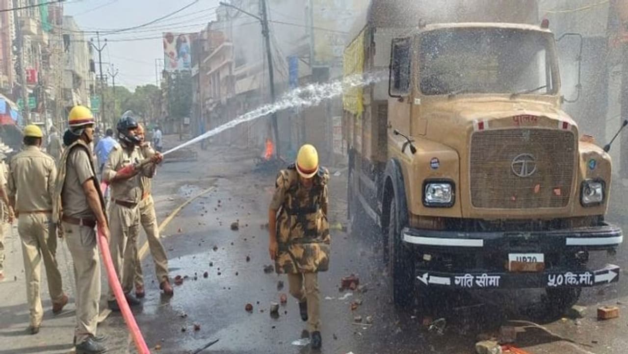 प्रयागराज में जुमे की नमाज के बाद बवाल, पुलिस की गाड़ी में लगाई गई आग