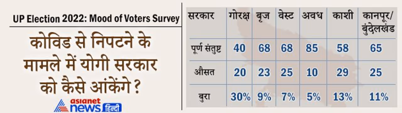 अवध क्षेत्र: यहां 85% वोटर्स ने सरकार के काम पर संतुष्टि जाहिर की है। 10% ने योगी के कोविड हैंडलिंग तरीके को सामान्य और 5% ने खराब बताया है।