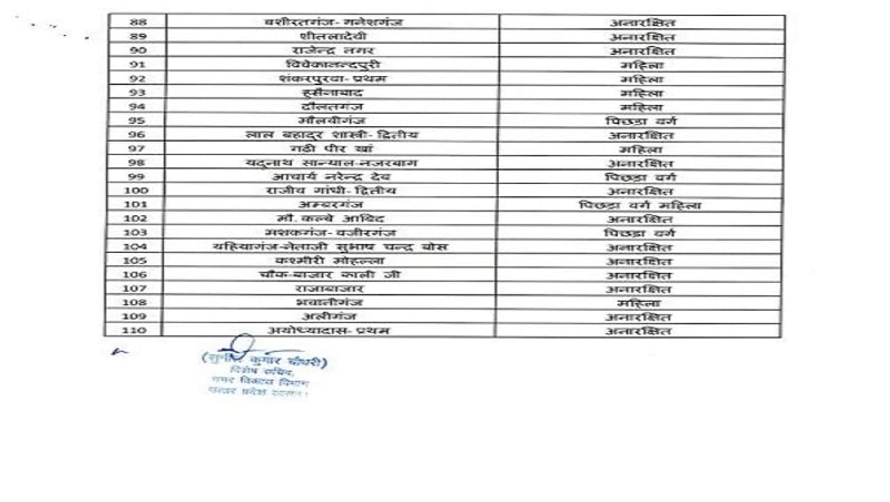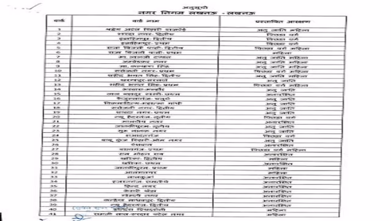 प्रमुख सचिव अमृत अभिजात ने स्पष्ट निर्देश जारी किया है कि 7 दिन के अंदर जिनकी आपत्तियां जिलाधिकारी कार्यालय में आएगी। उनका ही निस्तारण किया जाएगा। महिलाओं के लिए कुल 36 सीटें आरक्षित की गई हैं। जिसमें से सामान्य महिला की कुल सट 24 हैं, ओबीसी महिला की कुल सीट छह हैं और एससी महिला की कुल छह सीटें निर्धारित की गई है। बता दें कि लखनऊ नगर निगम में महापौर की सीट साल 2017 में महिला की आरक्षित थी।