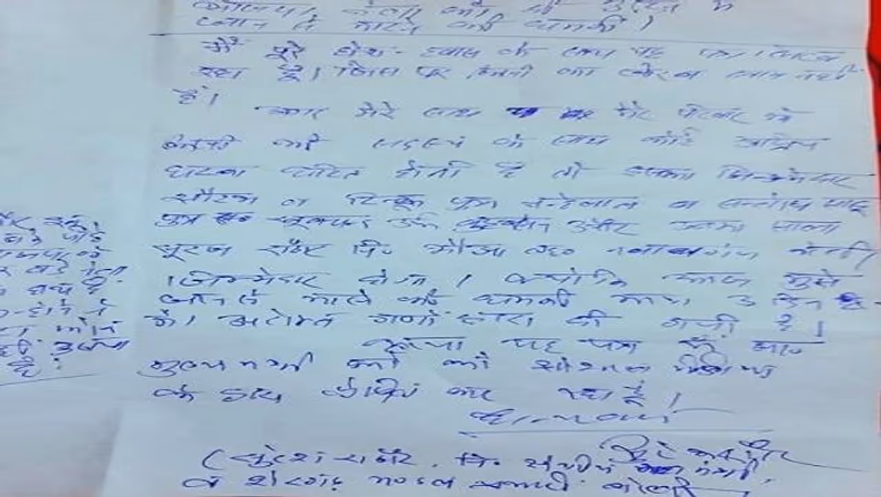 बरेली के बीजेपी नेता सुरेश राठौर ने पत्र में लिखा है कि वह पूरे होशोहवास में यह पत्र लिख रहे हैं। अगर उनके और परिवार के किसी भी सदस्य के साथ कोई अप्रिय घटना घटित होती है तो इसके लिए सौरभ, टिंकू, संतोष साहू और उनका साला सूरज राठौर जिम्मेदार होगा।