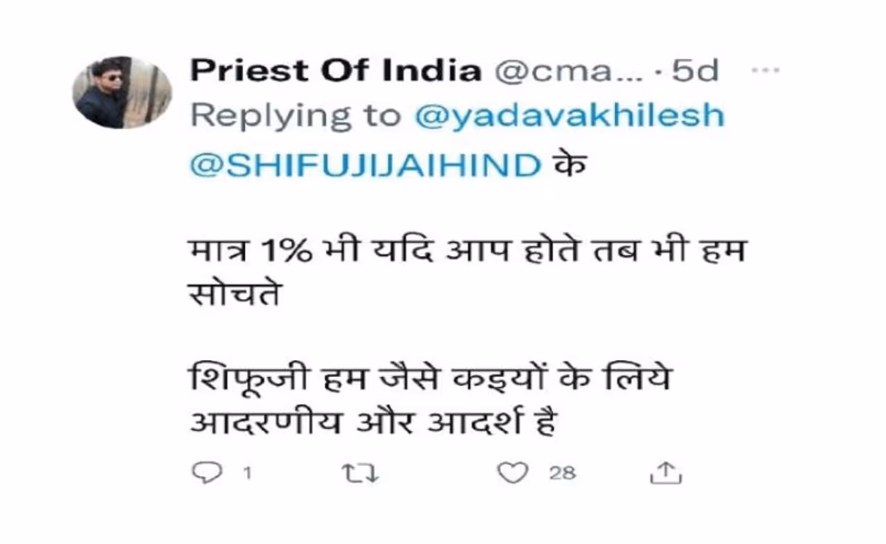 वहीं, प्रिस्ट ऑफ इंडिया नाम के यूजर ने लिखा, मात्र एक प्रतिशत भी यदि आप होते तब भी हम सोचते। शिफूजी हम जैसे कइयो के लिए आदरणीय और आदर्श है।