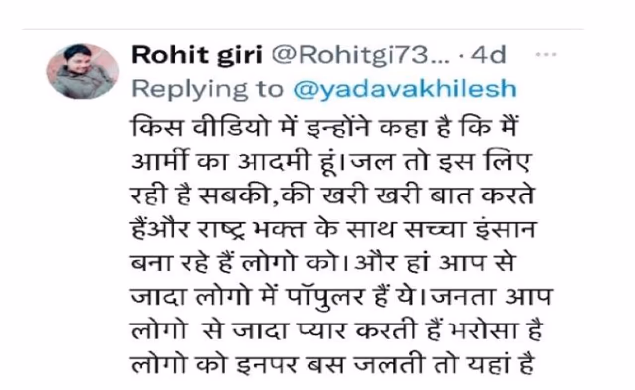रोहित गिरी नाम के एक यूजर ने लिखा, किस वीडियो में इन्होंने कहा है कि मै आर्मी का आदमी हूं। जल तो इसलिए रही है सबकी कि खरी-खरी बात करते हैं और राष्ट्र भक्त के साथ सच्चा इंसान बना रहे हैं लोगों को। और हां आपसे ज्यादा लोगों में पॉपुलर हैं ये। जनता आप लोगों से ज्यादा प्यार करती है भरोसा है लोगो को इन पर बस जलती तो यहां है।