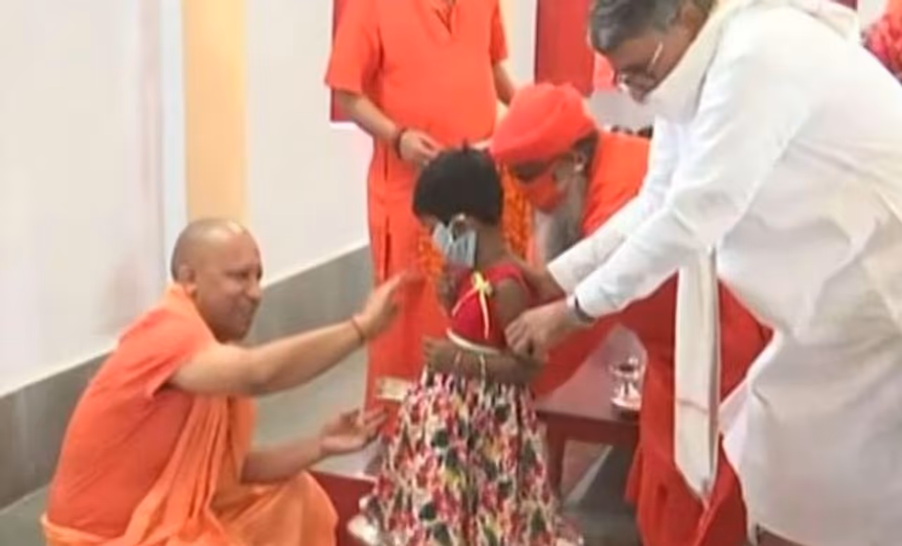 योगी ने अपने हाथ से परोसी कन्याओं को पुड़ी