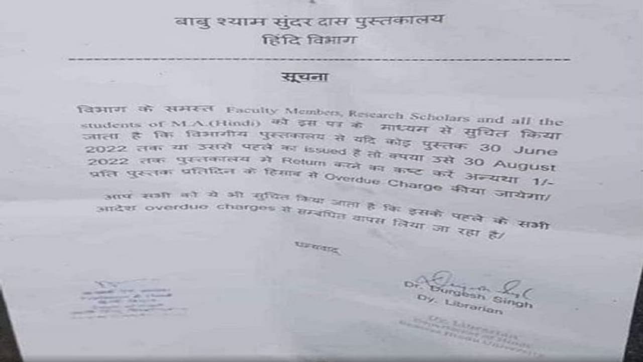 बीएचयू के हिंदी विभाग की हिंदी कितनी कमजोर है, इसका अंदाजा इस पत्र से ही लगाया जा सकता है। विभाग के द्वारा सूचना पत्र में हिंदी तक को भी सही से नहीं लिखा गया है। मात्राओं की गलतियों की शुरुआत पत्र के हेड यानी हेडलाइन से ही शुरू होती है, जहां हिंदी विभाग के लेटर हेड पर लिखा है- 'बाबु श्याम सुंदर दास पुस्तकालय', जबकि होना चाहिए बाबू श्याम सुंदर दास पुस्तकालय। हिंदी विभाग के सूचना पत्र में बाबू की जगह बाबु लिखा हुआ है।
