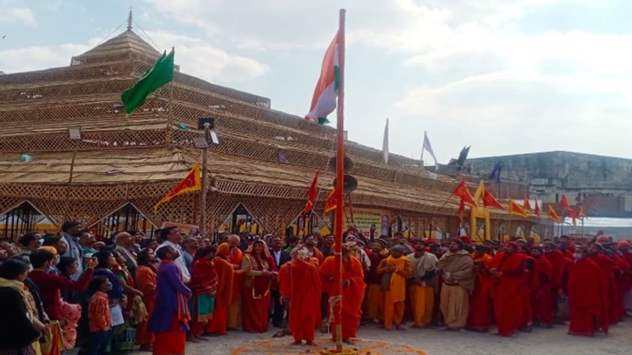 यज्ञ पूजन के साथ साथ भारत के 73 वें गणतंत्र दिवस के उपलक्ष्य में महामंडलेश्वर स्वामी प्रखर महाराज के सानिध्य में स्वामी पूर्णानंदपुरी महाराज,आत्म बोधप्रकाश ब्रह्मचारी मां चिदानंदमयी के सहित अन्य आचार्यों ने ध्वजारोहण किया इसके साथ भारत माता की जय,देश के शहीदों के जयकारों के साथ राष्ट्रगान को यज्ञशाला में उपस्थित ब्राह्मणों द्वारा एक स्वर में गाया गया जिससे यज्ञशाला परिसर की मनोहारी छटा देखने बन रही थी। ध्वजारोहण से पूर्व वैदिक मंत्रोच्चार भी किया गया।