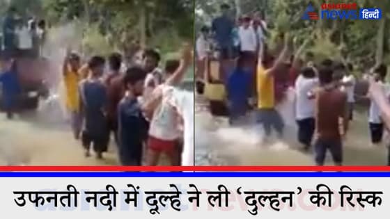दुल्हन ब्याहने के लिए उफनती नदीं में कूद गया दूल्हा, पीछे पीछे बैंड बाजा लेकर पहुंची बारात, देखें वीडियो