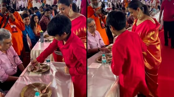 काजोल के बेटे ने परोसा भोग