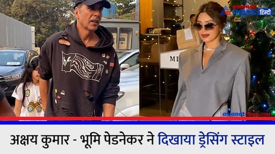 अक्षय कुमार अपनी बेटी के साथ एक लोकेशन पर स्पॉट किए गए, इस दौरान उन्होंने कई जगहों से फटी टी शर्ट पहनी हुई थी। भूमि पेडनेकर को भी ऐसे ही डिफरेंट और अजीबोगरीब ड्रेस में स्पॉट किया गया है।