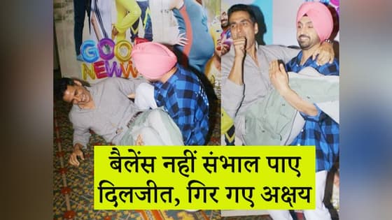 मुंबई. अक्षय कुमार, करीना कपूर, दिलजीत दोसांझ और कियारा आडवाणी की फिल्म 'गुड न्यूज' 27 दिसंबर को रिलीज हो रही है। फिल्म की स्टार कास्ट इन दिनों प्रमोशन में जुटी हुई है। फिल्म के प्रमोशन के दौरान एक मजेदार वाक्या हुआ। दरअसल, फिल्म के प्रमोशन के दौरान अक्षय कुमार और दिलजीत दोसांझ फोटोग्राफर्स के सामने पोज दे रहे थे। तभी कैमरामैन के कहने पर अक्षय अचानक दिलजीत की गोद में कूद गए और न्यूबॉर्न बेबी की तरह एक्ट करने की कोशिश करने लगे। लेकिन दिलजीत, अक्षय का भार नहीं संभाल पाए और दोनों ही स्टेज पर गिर पड़े। हालांकि, गिरने के बाद दोनों जोर से ठहाका लगाकर हंसे। उनका ये वीडियो सोशल मीडिया पर वायरल हो रहा है। वीडियो देख लोग तरह-तरह के कमेंट कर रहे हैं। एक ने अक्षय को टैग करते हुए कहा- शर्म करो। वहीं, एक अन्य बोला- अक्षय प्लीज अपनी उम्र का ध्यान रखे। 'गुड न्यूज' के डायरेक्टर राज मेहता हैं। हीरू यश जौहर, अरुणा भाटिया, करण जौहर, अपूर्वा मेहता और शशांक खेतान ने इसे प्रोड्यूस किया है।