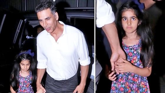 अक्षय का हाथ पकड़े फिल्म देखने पहुंची बेटी नितारा, कैमरामैन को देख डरकर छुप गई पापा के पीछे