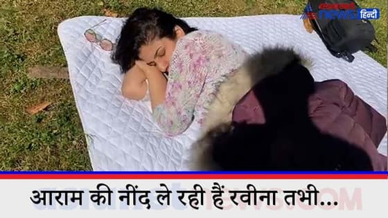 वीडियो डेस्क। बॉलीवुड एक्ट्रेस रवीना टंडन (Raveena Tandon) सोशल मीडिया पर खूब एक्टिव रहती हैं। हाल ही में रवीना टंडन ने अपने इंस्टाग्राम एकाउंट से एक वीडियो शेयर किया है। इसमें नजर आ रहा है कि वह वादियों में आराम की नींद ले रही हैं तभी एक शख्स वहां आता है और उनका वीडियो बनाना शुरू कर देता है। इसी बीच रवीना टंडन की नींद खुल जाती है और वह चौंक जाती हैं। रवीना टंडन ने अपने इस वीडियो को शेयर करते हुए लिखा, "जब आप काम के बीच सोते हुए पकड़े जाओ."