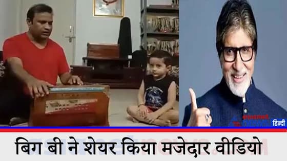 वीडियो डेस्क। बॉलीवुड के शहंशाह अमिताभ बच्चन (Amitabh Bachchan) सोशल मीडिया पर भी काफी एक्टिव रहते हैं। इन दिनों टीवी का मशहूर क्विज शो 'कौन बनेगा करोड़पति 12'' (Kaun Banega Crorepati 12) होस्ट कर रहे हैं। अमिताभ बच्चन अकसर ट्विटर पर वायरल वीडियो शेयर करते रहते हैं। हाल ही में एक वीडियो शेयर किया है. इस वीडियो में एक बाप और बेटे की जोड़ी हारमोनियम बजाती हुए गाने का अभ्यास करती नजर आ रही हैं। वीडियो में बच्चा अकेले भी गाता नजर आ रहा है। वो अपने पिता को डांट भी लगाता है। वीडियो को शेयर करते हुए अमिताभ बच्चन ने कैप्शन में लिखा, "बच्चा, आदमी का पिता होता है " अमिताभ बच्चन द्वारा शेयर किए गए इस वायरल वीडियो पर फैन्स खूब कमेंट कर रहे हैं