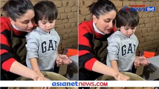 वीडियो डेस्क। करीना कपूर (Kareena Kapoor)और बेटे तैमूर अली खान(Taimur ali khan) का एक क्यूट वीडियो वायरल हो रहा है। वीडियो में तैमूर मिट्टी अपनी मां करीना के साथ मिट्टी के बर्तन बनाना सीख रहे हैं।
