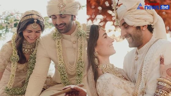 वीडियो डेस्क। रणबीर आलिया 14 अप्रैल को शादी के बंधन में बंध गए। 5 साल एक दूसरे को डेट करने के बाद दोनों ने वास्तु अपार्टमेंट में शादी की। दोनों की शादी के फोटो से इंटरनेट भरा पड़ा है। वहीं वरमाला के समय का एक वीडियो भी सामने आया है। जहां रणबीर आलिया से वरमाला पहनने के लिए घुटनों पर बैठ गए। दरअसल वरमाला के समय रणबीर को उनके दोस्तों ने कंधे पर उठा लिया और आलिया माला नहीं डाल पा रहीं थी लेकिन आलिया को रणबीर कैसे परेशान देख सकते हैं। वे भी जल्दी से नीचे आए और घुटनों पर बैठ गए जिसके बाद आलिया ने रणबीर के गले में वरमाला पहनाई। वहीं रणबीर ने खड़े होकर आलिया को किस किया। रणबीर का ये अंदाज लोगों को खूब पसंद आ रहा है।
