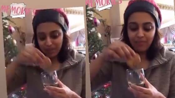 वीडियो डेस्क। बॉलीवुड एक्ट्रेस स्वरा भास्कर (Swara Bhasker) अपने एक वीडियो की वजह से ट्रोल हो रही हैं। ये वीडियो उन्होंने क्रिसमस के मौके पर शेयर किया। बेहद ही खास अंदाज में क्रिसमस सेलिब्रेट किया। क्रिसमस के दिन स्वरा भास्कर (Swara Bhasker Video) ने एक रेसिपी अपने फैन्स के साथ शेयर की। उन्होंने वाइन में बिस्कुट मिलाकर खाया। इस रेसिपी का वीडियो फिलहाल सोशल मीडिया पर छाया हुआ है।